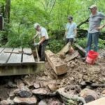 A few hard working member of FoCW spent a day last weekend repairing the sagging bridge. Check it out: